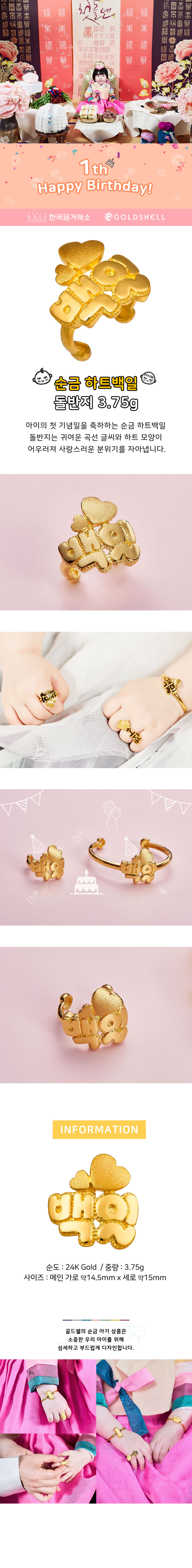 • 순금 하트백일 돌반지 3.75g